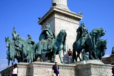 | Keywords: Budapest Heroes square 7.jpg en Statues under main column of Millenium Monument on Heroes' square Budapest Budapest Hungary Náměstí Hrdinů v Budapešti Maďarsko own Karelj 2009-04 47 30 53 96 N 19 4 41 12 E Millennium Monument Budapest -Seven chieftains of the Magyars Equestrian statue of Árpád Budapest |