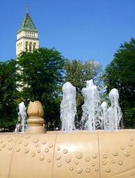 Keywords: budapest hungary fountain church blue sky wood water tower