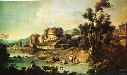 | Keywords: Budapest kunst 0025.tif on the riverside landscape painting canvas 122 x 200 cm master pieces of art of the Museum for Art Budapest Museum of Fine Arts Budapest date Giuseppe Zais 1709 - 1784 Italian Venetian school public domain The authoer has been dead for more than 200 years PD-old 18th-century landscape paintings 18th-century oil on canvas paintings in Italy 18th-century paintings in Hungary Collections of the Museum of Fine Arts Budapest Italian paintings in Hungary People and ruins in paintings Paintings not categorised by year |