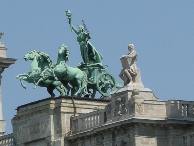 Keywords: BudapestDSCN3483.JPG Budapest own self taken 2009-05-20 Yoav Dothan Own work all rights released Public domain Ethnographical Museum Budapest Statues in Budapest District V Sculptures by Károly Senyei Sculptures by János Fadrusz 1896 statues in Hungary Bronze statues in Budapest 1896 bronze statues Horse carts in art Statues of horses in Hungary ImageNote 1 274 178 1979 1674 3648 2736 2 Statue by Károly Senyei ImageNoteEnd 1 ImageNote 2 2134 698 707 1076 3648 2736 2 Statue by János Fadrusz ImageNoteEnd 2 Triga statue by Károly Senyei (2001) on the facade of Ethnographical Museum BudapestDSCN3483.jpg Budapest About Triga statue the original statue made by János Fadrusz in 1896 This is a replica made after photos by Károly Senyei in 2001 own self taken 2009-05-20 Yoav Dothan Own work all rights released Public domain Ethnographical Museum Budapest Statues in Budapest District V Sculptures by Károly Senyei Sculptures by János Fadrusz 1896 statues in Hungary Bronze statues in Budapest 1896 bronze statues Horse carts in art Statues of horses in Hungary ImageNote 1 274 178 1979 1674 3648 2736 2 Statue by Károly Senyei ImageNoteEnd 1 ImageNote 2 2134 698 707 1076 3648 2736 2 Statue by János Fadrusz ImageNoteEnd 2 Replicas in Hungary 2001 statues in Hungary