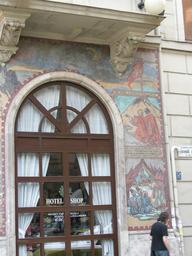 | Keywords: BudapestDSCN3614.JPG Mosaic on the corner of Béke Szalloda/Hotel Teréz körút 43 Budapest at Szondi utca own self taken 2009-05-22 Yoav Dothan Own work all rights released Public domain Architectural elements in Budapest Mosaics in Budapest Teréz Blvd 43 Béke Hotel Budapest Siege of Drégely Drégely Castle György Szondy |