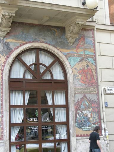 Keywords: BudapestDSCN3614.JPG Mosaic on the corner of Béke Szalloda/Hotel Teréz körút 43 Budapest at Szondi utca own self taken 2009-05-22 Yoav Dothan Own work all rights released Public domain Architectural elements in Budapest Mosaics in Budapest Teréz Blvd 43 Béke Hotel Budapest Siege of Drégely Drégely Castle György Szondy |