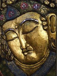 Keywords: buddha golden peaceful face portrait sculpture fresco