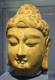 | Keywords: Buddha head, China, late Tang dynasty, 10th century AD, or Song dynasty, 960-1279 AD, stone - Fitchburg Art Museum - DSC08725.JPG en Exhibit in the Fitchburg Art Museum Fitchburg Massachusetts USA This artwork is old enough so that it is in the public domain Photography was permitted in the museum without restriction 2013-06-14 15 19 01 own Daderot cc-zero Art of China in the Fitchburg Art Museum Uploaded with UploadWizard Buddhist statues of the Tang Dynasty | ||||