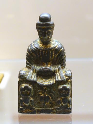 | Keywords: Buddha on Lion Throne, Northern China, Sixteen Kingdoms period, 304-439 AD, gilt bronze - Ethnological Museum, Berlin - DSC02128.JPG en Exhibit in the Ethnological Museum Berlin Germany Photography was permitted in the museum without restriction 2014-11-11 11 08 04 own Daderot other versions cc-zero Sculptures of China in the Ethnological Museum Berlin Uploaded with UploadWizard | ||||