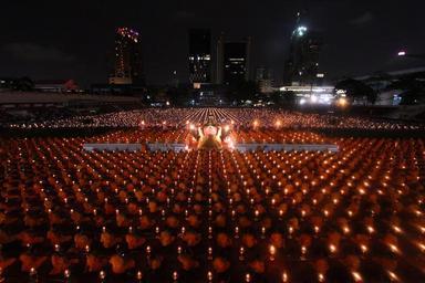 Keywords: buddhists monks ceremony convention meeting many praying meditating group people meditate peace traditions thailand candles