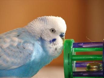 Keywords: budgie bird blue plays feather bill portrait toys