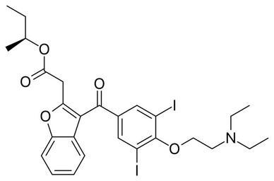 Keywords: Budiodarone.svg Chemical structure of w budiodarone ATI-2042 Own 19 01 10 July 2012 UTC Ed Edgar181 Acetophenones Antiarrhythmic agents Benzofurans Diiodobenzenes Ethylamines Iodophenols Phenol ethers Sec-butyl esters Tertiary amines