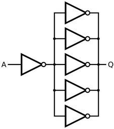 | Keywords: Buffer (5x drive) from NOT.svg Diagram showing a way of making a logical buffer with 3x output drive from the six NOT gates on a hex gate IC eg 4049 Own 2008-12-22 Inductiveload Own work all rights released Public domain Alternative logic gates |