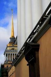 Keywords: building architecture historic admiralty navy yellow white pillars tower spire golden tall landmark sky