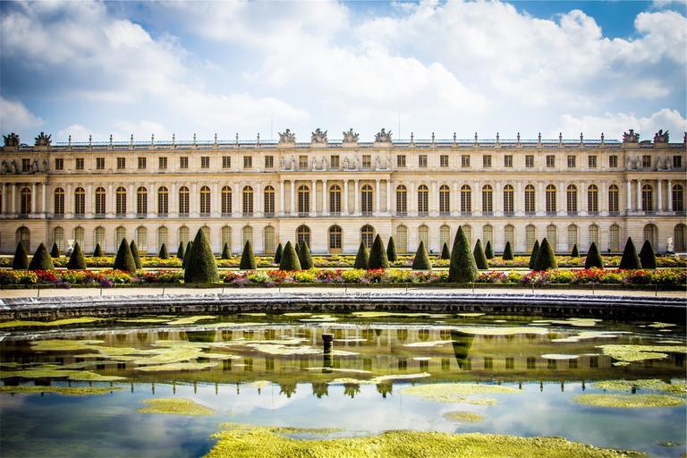 Keywords: building architecture windows garden shrubs flowers pond