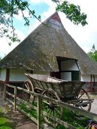Keywords: building barn thatched thatched roof country fence rustic rural farm old architecture old barn vintage agricultural machine farm equipment old machine metal rusty agriculture outside
