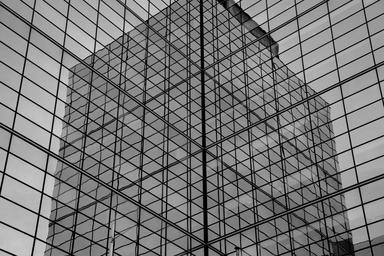 Keywords: building black and white lines urban city office skyscraper architecture cityscape panoramic exterior scene modern landmark view financial midtown center mirrors reflection convergence shape business sky tower skyline new