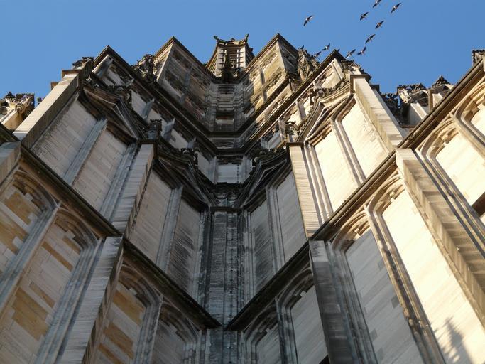 Keywords: building church birds fly over formation dom münster steeple ulm cathedral high large huge impressive wall stone architecture