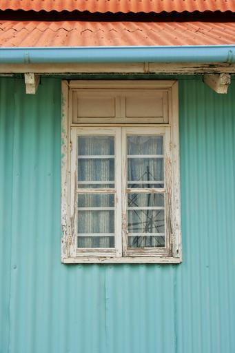 Keywords: building corrugated iron pastel-green window frame white