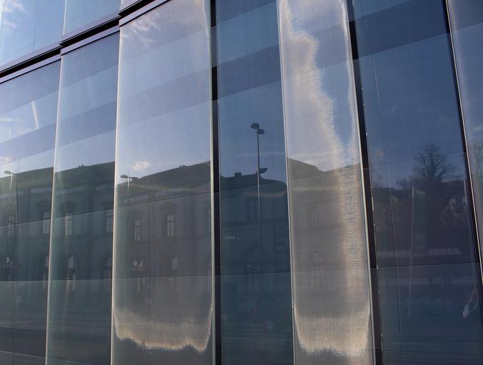 Keywords: building facade glass mirroring structure architecture modern shiny detail close up rorschach switzerland