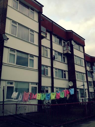 Keywords: building flats architecture urban london windows house colour colors colours washing clothes home window estate street outdoors vintage grunge retro