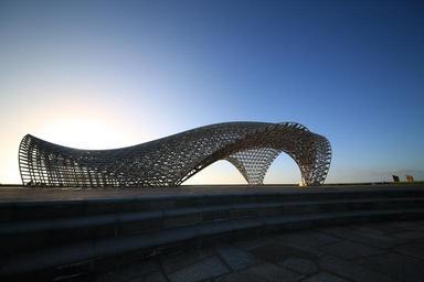 Keywords: building grid metal beach sea view park shanghai nanhui at dusk sunset open