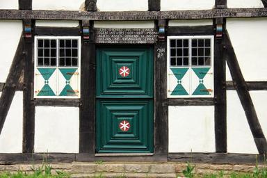 Keywords: building home door truss fachwerkhaus entrance door window green bar inscription font
