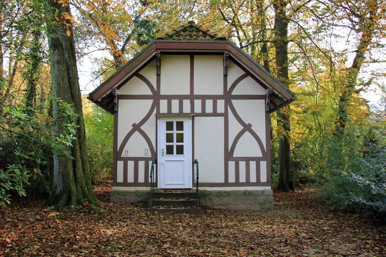Keywords: building home truss fachwerkhaus toilet door input ladies men park autumn