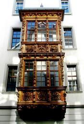 Keywords: building part of the house bay window wood paneling carving window old town st gallen switzerland