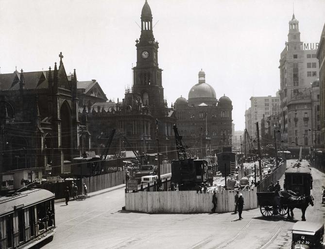 Keywords: archives state records nsw staterecordsnsw newsouthwales blackandwhite town hall townhall city circle citycircle sydney george street georgestreet queen victoria building queenvictoriabuilding trams horse and cart horseandcart people construction historypin outdoor architecture building city black and white George Street during construction of Town Hall Station Dated: 19 February 1930 Digital ID: 12685_a007_a00704_8735000034r Rights: www.records.nsw.gov.au/about-us/rights-and-permissions We'd love to hear from you if you use our photos. Many other photos in our collection are available to view and browse on our website using Photo Investigator. George Street during construction of Town Hall Station Dated: 19 February 1930 Digital ID: 12685_a007_a00704_8735000034r Rights: www.records.nsw.gov.au/about-us/rights-and-permissions We'd love to hear from you if you use our photos. Many other photos in our collection are available to view and browse on our website using Photo Investigator. |