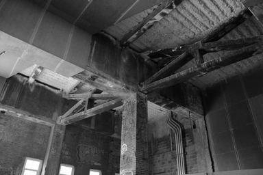 Keywords: building warehouse industrial bricks concrete graffiti black and white architecture