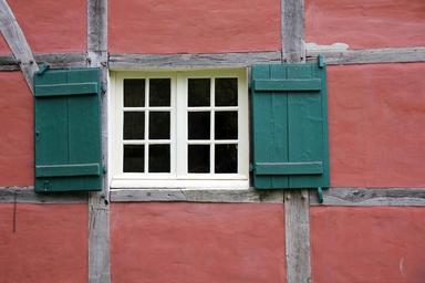 Keywords: building window shutter truss fachwerkhaus red green
