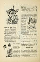 | Keywords: Bulbs and plants (16202471557).jpg 12 <br> CURRIE BROS MILWAUKEE WiS <br> BLACK CALLA <br> Callas <br> Each Doz <br> Spotted Leaf Calla Variegated <br> summer blooming; Calla Foliage <br> dark green beautifully spotted white <br> making a very handsome plant when <br> not in bloom The flowers are pure <br> white same as the old favorite Calla <br> onlysmaller 15 1 50 <br> White Calla Ethiopica Lily of the <br> Nile Too well known to need de- <br> scription 15 1 50 <br> Black Calla Arum Sanctum The <br> flowers grow fully a foot in height <br> almost coal black and green under- <br> neath Large bulbs 15 150 <br> New Dwarf Calla Little Gem A miniature <br> Calla never exceeding 12 inches in height The <br> flowers are perfect in form not more than two and a <br> half inches in diameter and are pure white It pro- <br> duces these beautiful flowers in great profusion and <br> almost continuously <br> Price 15 cents 1 50 per dozen <br> Red Calla Arum Cornutum Flow- <br> ers red spotted black stems mottled <br> white and green and handsome palm- <br> like foliage 15 150 <br> CROWN IMPERIAL <br> The Crown Imperial <br> derives its name from <br> the crown-like appear- <br> ance of its cluster of <br> peculiar bell - shaped <br> flowers It is one of <br> the earliest spring <br> flowering bulbs and <br> quite hardy The bulbs <br> should be planted about <br> five inches deep They <br> do not usually flower <br> until the second year <br> after planting but from <br> that time they continue <br> to increase and flower <br> without further care <br> Doz <br> 1 50 <br> 2 50 <br> 2 50 <br> 2 00 <br> 1 50 <br> Each <br> Aurora Red 15 <br> Lutea Yellow 25 <br> Gold Striped Beautifully striped <br> golden yellow with bright red flowers <br> which are borne in clusters 25 <br> Sulphurea Sulphur yellow 20 <br> Fine Mixed Varieties 15 <br> Crocuses <br> For massing in beds by themselves for edging beds <br> of other bulbs or for planting in clumps in the grass <br> on the lawn these beautiful and earliest of all spring <br> flowering bulbs are unexcelled We need not de- <br> scribe them as everybody even from childhood is <br> familiar with them; <br> and all having any <br> love for plants ap- <br> preciate them They <br> are always gladly <br> welcomed after <br> the long and <br> dreary winter <br> months <br> Plant in Octo- <br> ber or Novem- <br> ber before hard <br> frost sets in; set <br> about three <br> inches apart <br> and two inches <br> deep; protect <br> with a light <br> covering of <br> straw or ma- <br> nure removing <br> the same as soon <br> as winter is over <br> - <br> They may remain in the beds year <br> after year but if necessary maybe removed and kept <br> dry as soon as the foliage is matured to be again <br> planted the following fall <br> Doz 100 1000 <br> Large White Striped Blue <br> Yellow each color separate 10 60 3 50 <br> All Colors Mixed 10 55 3 25 <br> Large Flowering Crocuses <br> The large flowering Crocus may be relied upon to <br> give larger and more perfect flowers and should be <br> used where a special effect is desired <br> Doz 100 <br> David Rizzo Large purple 15 85 <br> Cloth of Gold-Gold striped brown 12 60 <br> Cloth of Silver White striped lilac 15 75 <br> Mont Blanc Large white 15 85 <br> Non Plus Ultra Purple with white tip 15 85 <br> Sir Walter Scott White striped pur- <br> ple 15 85 <br> Autumn Crocus <br> Colchicum A curious and interesting plant <br> known as the Autumn Crocus If planted in fall the <br> leaves make their appearance in spring while it does <br> not come into bloom until fall and the following sum- <br> mer will find it in seed One of its peculiarities is <br> that it will bloom equally as well out of the ground as <br> in it If placed on a shelf without soil or moisture <br> its pretty pink flowers will appear just the same as if <br> it had been left in the ground <br> Fine mixed large bulbs 6c each; dozen 60c; <br> 4 00 per 100 42214142 133055 65937 Page 12 Text http //www biodiversitylibrary org/page/42214142 1908 10 5962/bhl title 65937 Currie Brothers Company ; Henry G Gilbert Nursery and Seed Trade Catalog Collection NameFound Colchicum NameConfirmed Colchicum L EOLID 33203 NameFound Ethiopica NameConfirmed Ethiopica EOLID 66302 NameBankID 4162235 NameFound Sulphurea NameConfirmed Sulphurea NameBankID 5122512 Biodiversity Heritage Library Currie Bros Co Bulbs and plants autumn 1901 Garden Stories Bulbs Plants Catalogs Flowers Nurseries Horticulture Plants Ornamental Seeds U S Department of Agriculture National Agricultural Library bhl page 42214142 dc identifier http //biodiversitylibrary org/page/42214142 bhlGardenStories BHLinbloom bulbs plants nurseries horticulture plants ornamental u s department of agriculture national agricultural library bhlgardenstories bhlinbloom Information field Flickr posted date ISOdate 2015-01-28 Check categories 2015 August 24 CC-BY-2 0 BioDivLibrary https //flickr com/photos/61021753 N02/16202471557 2015-08-24 07 51 12 cc-by-2 0 PD-old-70-1923 Currie Bros catalogs Photos uploaded from Flickr by FĂŚ using a script |