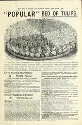 | Keywords: Bulbs roses plants of all kinds for winter blooming (16369827606).jpg Miss Ella V- Baines The Woman Florist Springfield Ohio 9 <br> POPULAR BED OF TULIPS <br> JLA <br> Uv/ - Vi <br> teW/i <br> Popular Bed of Rex Rubrorum bright scarlet and La Candeur pure white Double <br> Tulips It is five feet across or fifteen feet in circumference and requires 200 bulbs planted <br> four inches apart Price for this bed 100 bulbs of each kind 3 50; or a bed half this size <br> 50 bulbs of each color 1 75 Don't fail to try a bed of these and see how pretty they are <br> LATE DOUBLE/FLCWERING <br> X TULIPS Named <br> Prica 3 cents each or the set of six for 15 cents- <br> Blue Flag Richest sky-blue The only Tulip of this class <br> Mariage de Ma Fille White with cherry-crimson feathered <br> Extra fine <br> Overwinnaar Blue and white feathered Extra <br> Paeonygold A rich scarlet feathered yellow <br> Turban Beautiful rich violet <br> Yellow Hose Splendid golden-yellow very large flower The <br> best of the yellow Tulips Extra Price 2 50 per hundred <br> SPECIAL OFFER I will send the entire collection of <br> Double Early and Late Flowering Tulips twenty-three dis- <br> tinct kinds for 50 cents These will make a beautiful <br> showy bed <br> EARLY SINGLE/FLOWERING <br> X TULIPS Named <br> TTllIlMCt are such universal favorites that it is scarcely <br> Vlfllllj 'Z necessary to expatiate upon their merits here <br> Their ease of culture combined with beauty of form and gor- <br> geous coloring render them the most popular bulbs grown for <br> Spring bedding and for Winter-flowering in the greenhouse and <br> window gardens they are incomparable The Tulip is extremely <br> hardy and of easy culture flowering as freely in the shade as in <br> the sunshine and producing as fine flowers in a confined town <br> garden as in a more favored place Double and Single Tulips <br> when associated together and planted in front of shrubs main- <br> tain a longer display than if either are separately planted In <br> gardens where the flowerbeds must be kept gay from the earliest <br> day of Spring plant between the lines of Tulips Scilla Siberica <br> Chionodoxa Luciliae Snowdrops or Crocus and as these flower <br> first they can be removed or cut down when the Tulip is coming <br> into bloom The Single Tulip has a greater variety of rich deli- <br> cate and attractive colors than any other section of Spring flow- <br> ering bulbs Those only who have massed the different varie- <br> ties planting the bulbs four inches apart can form an idea of <br> their beauty and their great diversity in shade and color and the <br> grand effect they produce grouped in flower beds or borders <br> The Single Tulip is extensively grown for indoor decoration <br> three or five bulbs in a pot <br> Price 3 cents each; the set of twenty /nine distinct <br> varieties of early Single Tulips for 65 cents <br> \rtus Bronzy-scarlet well shaped flower <br> Bizard Verdikt Golden-yellow crimson striped <br> Belle Alliance Rich scarlet sweet scented <br> Colenr de Cardinal Brilliant red very showy <br> Crimson King Fine scarlet; easily forced in the house <br> Colenr Ponceau Bright red flaked with golden-yellow <br> Ctarysolora Golden-yellow extra fine It is the best single <br> yellow Tulip for outdoors <br> Cottage Maid Snow-white bordered with pink The prettiest <br> of all Tulips <br> Duchess de Parma Orange-yellow tinted brown Very large <br> Eleonora Richest royal purple Extra fine <br> Joost Van Vondel Glossy rosy-red and white One of the <br> largest Tulips <br> Kei serskroon Red with broad yellow edge Fine for pots <br> The largest of all the Tulips <br> La Keine The Queen A beautiful clear white The best <br> white for pot culture <br> L'lmmacnle Snow-white extra large flower <br> Lac Van Kliyn Pale rose violet large white eye <br> Proserpine Very fine glossy crimson-pink very large This <br> very striking variety is unique in color Extra fine <br> Prince of Austria Orange shaded scarlet Very fine <br> Rose Gris de Lin Very fine bright pink This is the best of <br> all pink Tulips <br> Rose Mundi Huikman Rich rose Desirable <br> Standard Royal A golden-yellow striped brightest crimson <br> Standard Silver Brightest crimson striped pure white <br> Thomas Moore Richest orange shaded brightest red <br> Van der Neer The finest of all violet-colored Tulips Extra <br> large flower <br> Vermilion Brilliant A glossy bright vermilion This beats all <br> scarlets for forcing or bedding <br> VYapen van Linden Beautiful clear pink blotched pure white <br> Wouwerman A rich violet white eye extra large flower <br> White Hawk An excellent pure white flower <br> White Swan Pure snow-white Very desirable <br> Yellow Prince Golden-yellow scented like Tea Roses It is <br> one of the best yellow Tulips for forcing and is used in <br> enormous quantities 41881517 131173 64737 Page 9 Text http //www biodiversitylibrary org/page/41881517 1897 10 5962/bhl title 64737 Ella V Baines Firm ; Henry G Gilbert Nursery and Seed Trade Catalog Collection NameFound Chionodoxa NameConfirmed Chionodoxa Boiss EOLID 1392558 NameBankID 471207 NameFound Scilla NameConfirmed Scilla L EOLID 33607 NameFound Siberica NameConfirmed Siberica NameBankID 5328274 Biodiversity Heritage Library Bulbs roses plants of all kinds for winter blooming all the very best and choicest varieties 1897 Garden Stories Bulbs Plants Catalogs Flowers Plants Ornamental Seed industry and trade Seeds Trade catalogs U S Department of Agriculture National Agricultural Library bhl page 41881517 dc identifier http //biodiversitylibrary org/page/41881517 bhlGardenStories BHLinbloom bulbs plants plants ornamental u s department of agriculture national agricultural library bhlgardenstories bhlinbloom Information field Flickr posted date ISOdate 2015-01-29 CC-BY-2 0 BioDivLibrary https //flickr com/photos/61021753 N02/16369827606 2015-08-24 06 54 32 cc-by-2 0 PD-old-70-1923 Bulbs roses plants of all kinds