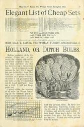 | Keywords: Bulbs roses plants of all kinds for winter blooming (15773337584).jpg Miss Ella V Baines The Woman Florist Springfield Ohio <br> Elegant List of Cheap Sets <br> Set A 12 Ever-blooming Roses ten colors 50 <br> Set B 12 Prize-winning Chrysanthemums all different 50 1 <br> Set C 10 lovely F chsias all different 501 <br> Set D 10 elegant Double Geraniums 50 1 <br> Set E 10 elegant Single Geraniums 501 <br> Set F 10 assorted Geraniums double single and scented 501 <br> Set G 10 choicest Double Hyacinths all different colors 50 1 <br> Set H 10 choicest Single Hyacinths all different colors 501 <br> Set I 6 Double and five Single Hyacinths 501 <br> Set J 12 assorted Hyacinths double single and Roman 50 <br> Set K 10 lovely Begonias choicest kinds 50 1 <br> Set L 15 choicest kinds ot Narcissus 50 <br> Set M 25 Lilies of the Valley exqni ite 50 1 <br> PRICK <br> Set N 12 magnificent Coleus bright colors 50ct-i <br> Set O 4 Chinese Sacred Lilies or Joss Flowtr - 50 cts <br> Set P 60 Crocus in four kinds 50 cts <br> Set Q 30 Parrot Tulips all kinds 50 cts <br> Set R 30 Double Tulips all kinds 50 cts <br> Set S 30 Single Tulips all kinds 50 cts <br> S t T 12 Vines and Plants suitable for vases and baskets 50 cts <br> Set U 4 choice Decorative Palms elegant 50 cts <br> Set V S Dwarf Ever-blooming French Cannas 50 cts <br> Set W 6 fragrant Carnation Pinks ready to bloom 50 cts <br> Set X 8 choice Hibiscus all colors 50 cts <br> Set Y 4 Begonia Rex all different 50 cts <br> NO TWO ALIKE IN THESE SETS <br> ANY THREE SETS FOR 1 25 <br> ANY FIVE SETS FOR 2 00 <br> By mail postpaid safe arrival and satisfaction guaranteed Order by the letters <br> MISS ELLA V BAINES THE WOMAN FLORIST SPRINGFIELD 0 <br> Holland or Dutch Bulbs <br> Holland produces all the Hy- <br> acinths Tulips etc of the <br> world the climate and soil be- <br> ing better adapted to their cul- <br> ture than anywhere else that <br> has been tried up to the present <br> time I wish to impress on my <br> patrons the fact that I import <br> my own bulbs direct from Hol- <br> land and 1 purchase the best <br> varieties that money will buy <br> therefore I can guarantee that <br> my bulbs are the very best that <br> can be found anywhere Give <br> me a trial I will not disap- <br> point you <br> I would advise the planting <br> of all bulbs for Winter flower- <br> ing in the common peach or <br> grape basket made from splits <br> These can be procured at al- <br> 111 SINGLE HYACINTHS <br> A DIAGRAM SHOWING DEPTH AND DISTANCE APART TO PLAN i <br> THE DIFFERENT VARIETIES OF BULBS <br> most any grocery store In these bas- <br> kets Hyacinths Narcissus Tulips Cro- <br> cus etc can be flowered to the greatest <br> perfection and with the least trouble I <br> have found them much better for the <br> purpose than pots Try them and re- <br> port success I know you will be pleased <br> with the results 41881511 131173 64737 Page 3 Text http //www biodiversitylibrary org/page/41881511 1897 10 5962/bhl title 64737 Ella V Baines Firm ; Henry G Gilbert Nursery and Seed Trade Catalog Collection NameFound Begonia NameConfirmed Begonia aff palmata GBG 002-089-95 EOLID 11904651 NameFound Hibiscus NameConfirmed Hibiscus L EOLID 60741 Biodiversity Heritage Library Bulbs roses plants of all kinds for winter blooming all the very best and choicest varieties 1897 Garden Stories Bulbs Plants Catalogs Flowers Plants Ornamental Seed industry and trade Seeds Trade catalogs U S Department of Agriculture National Agricultural Library bhl page 41881511 dc identifier http //biodiversitylibrary org/page/41881511 bhlGardenStories BHLinbloom bulbs plants plants ornamental u s department of agriculture national agricultural library bhlgardenstories bhlinbloom Information field Flickr posted date ISOdate 2015-01-29 CC-BY-2 0 BioDivLibrary https //flickr com/photos/61021753 N02/15773337584 2015-08-24 06 51 56 cc-by-2 0 PD-old-70-1923 Bulbs roses plants of all kinds for winter blooming Photos uploaded from Flickr by FĂŚ using a script |