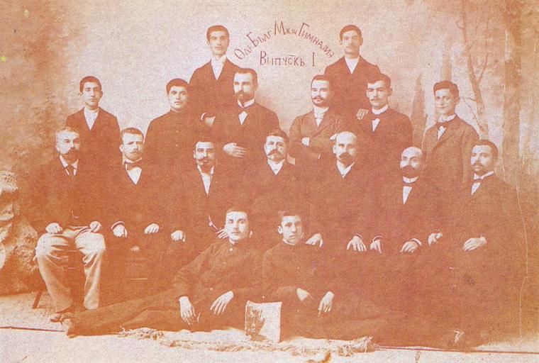 | Keywords: Bulgarian-men-school-Edirne-1st-alumni.jpg Ученици от пъ вия випуск на од инската бълга ска мъжка гимназия Д- Петъ Бе он с учителите си 1898-1899 година en Students from 1st alumni of the Edirne Bulgarian men high school Dr Peter Beron together with their teachers 1898-1899 Скани ано от Енциклопедия Исто ия на Бълга ия Издателство на БА София 1991 том 7 ст 432 en Scanned from Encyclopedia History of Bulgaria Bulgarian Academy of Sciences Publishing house 1991 Vol 7 p 432 1898-1899 - Historical images depicting Bulgarian culture PD-old |