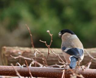 Keywords: bullfinch female garden bird uk adult bird fullmouth habitat nature outdoors bird-feeder eating feeding foraging perching sitting twig