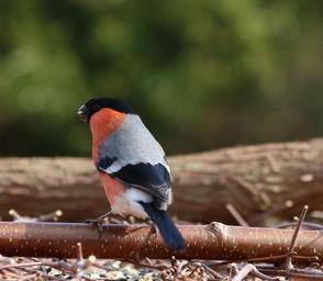 Keywords: bullfinch male garden bird uk adult bird fullmouth habitat nature outdoors bird-feeder eating feeding foraging perching sitting twig