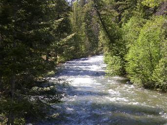 | Keywords: Bumping-River-May-2007.jpg The Bumping River is a tributary of the Naches River in Washington in the United States It flows down the east side of the Cascade Range through riparian forests in the Wenatchee National Forest and the William O Douglas Wilderness From its source at Fish Lake near Crag Mountain it flows northeast to Bumping Lake a natural lake enlarged and regulated by Bumping Lake Dam Below the dam the Bumping River continues flowing northeast It is joined by the American River its main tributary a few miles above its mouth where it joins the Little Naches River to form the Naches River Own 2007-05 Williamborg 03 31 29 May 2007 UTC Riparian forests in the United States William O Douglas Wilderness Rivers of Washington state |