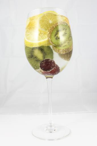 Keywords: bunch of grapes kiwi fruit lemon grapes sparkling water tropical fruit a glass of vitamins a healthy diet nutrition health