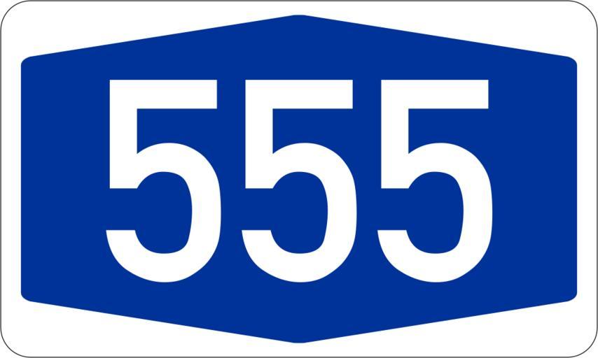 Keywords: Bundesautobahn 555 number.svg Bundesdeutsche Autobahnnummer Automatisch erzeugt durch 3247 German Autobahn number signet Created automatically by 3247 Bundesautobahn numbers 555 Bundesautobahn 555 Highways in Cologne