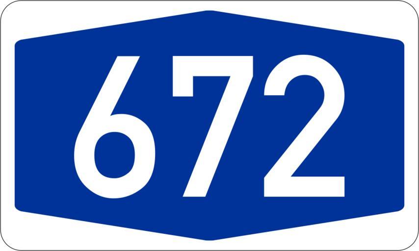 Keywords: Bundesautobahn 672 number.svg Bundesdeutsche Autobahnnummer Automatisch erzeugt durch 3247 German Autobahn number signet Created automatically by 3247 Bundesautobahn numbers 672 672 number