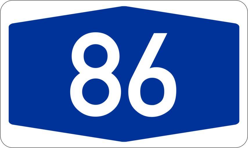 Keywords: Bundesautobahn 86 number.svg Bundesdeutsche Autobahnnummer Automatisch erzeugt durch 3247 German Autobahn number signet Created automatically by 3247 Bundesautobahn numbers 086 86 number