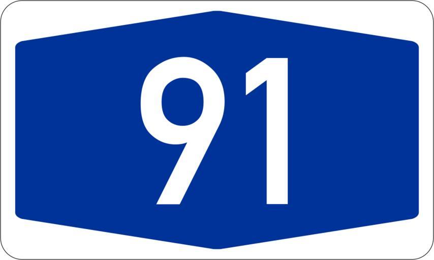 Keywords: Bundesautobahn 91 number.svg Bundesdeutsche Autobahnnummer Automatisch erzeugt durch 3247 German Autobahn number signet Created automatically by 3247 Bundesautobahn numbers 091 91 number