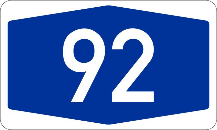 Keywords: Bundesautobahn 92 number.svg Bundesdeutsche Autobahnnummer Automatisch erzeugt durch 3247 German Autobahn number signet Created automatically by 3247 Bundesautobahn numbers 092 92 number