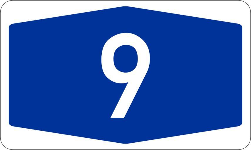 Keywords: Bundesautobahn 9 number.svg Bundesdeutsche Autobahnnummer Automatisch erzeugt durch 3247 German Autobahn number signet Created automatically by 3247 Bundesautobahn numbers 009 Bundesautobahn 9 9 number Bundesautobahn