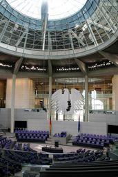 Keywords: bundestag reichstag berlin hall heraldic animal capital glass dome government architecture policy berlin government federal eagle adler plenarssal germany