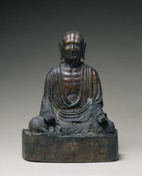 | Keywords: Bunkan - Figure of a Monk - Walters 61267.jpg The inscription under the base of this figure states that it was made for or perhaps by Monkan in the year 1347 It likely represents a Shingon priest of this name who lived from 1278-1357 and excelled in the painting of Buddhist subjects The sculpture's small scale fine detail and formal composition suggest that it ws made as a personal devotional object for use at temple feasts and other ritualized functions It is carved from a single piece of Japanese cedar 1347 Muromachi wood cm 22 16 6 accession number 61 267 14423 Bunkio Matsuki Sale Amemrican Art Association New York February 8 - 10 1906 no 284 Henry Walters city Baltimore Walters Art Museum Henry Walters Acquired by Henry Walters 1906 Signature Shamon Monkan; Dedication Shamon Monkan; Date Shohei ni 1347 place of origin Kyoto Japan Walters Art Museum license Art of Japan in the Walters Art Museum Bunkan Media contributed by the Walters Art Museum needs category review Media contributed by the Walters Art Museum needs artist update |