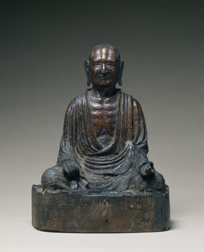 Keywords: Bunkan - Figure of a Monk - Walters 61267.jpg The inscription under the base of this figure states that it was made for or perhaps by Monkan in the year 1347 It likely represents a Shingon priest of this name who lived from 1278-1357 and excelled in the painting of Buddhist subjects The sculpture's small scale fine detail and formal composition suggest that it ws made as a personal devotional object for use at temple feasts and other ritualized functions It is carved from a single piece of Japanese cedar 1347 Muromachi wood cm 22 16 6 accession number 61 267 14423 Bunkio Matsuki Sale Amemrican Art Association New York February 8 - 10 1906 no 284 Henry Walters city Baltimore Walters Art Museum Henry Walters Acquired by Henry Walters 1906 Signature Shamon Monkan; Dedication Shamon Monkan; Date Shohei ni 1347 place of origin Kyoto Japan Walters Art Museum license Art of Japan in the Walters Art Museum Bunkan Media contributed by the Walters Art Museum needs category review Media contributed by the Walters Art Museum needs artist update |