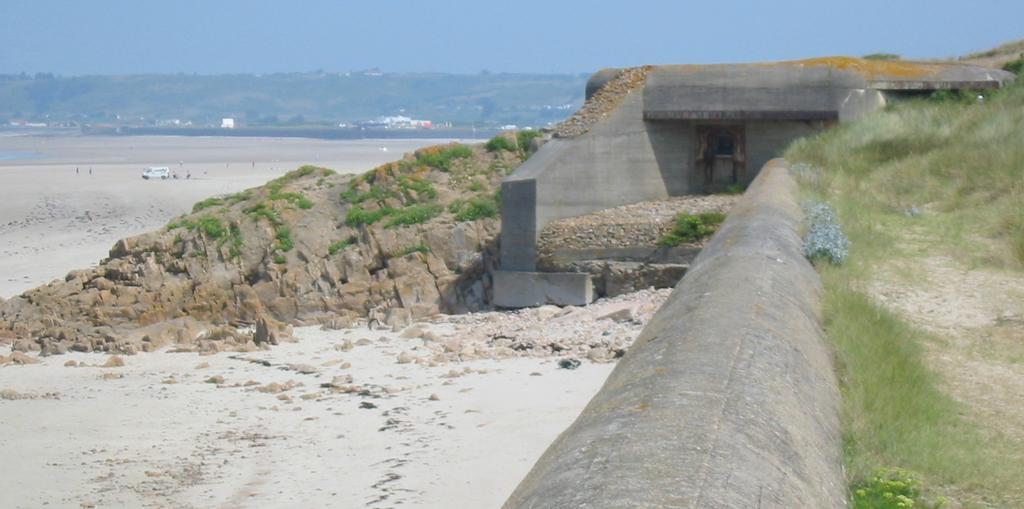 Keywords: Bunker St Ouen's Bay Jersey German occupation.jpg WWII German occupation coastal fortification in St Ouen's Bay Jersey own 2006-07-21 Man vyi Bunkers in the British Crown Dependencies Fortifications of World War II in Jersey Seawalls in Jersey Coasts of Jersey Anti-tank obstacles in Jersey |