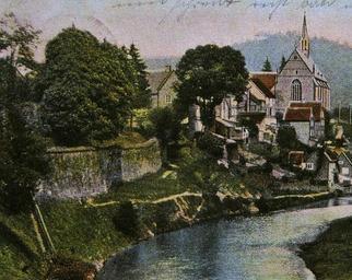 | Keywords: Burg2Beyenburg.jpg Beyenburg von Westen Postkarte 1904 ru Байенбу г видж с запада на пе еднем плане остаток стены замка с почтовой ка точки 1904 года own 1904 author PD-old Burg Beyenburg Postcards of Wuppertal 1904 in Wuppertal Beyenburger Klosterkirche |
