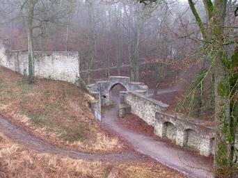 | Keywords: Burg Plesse Barbican.jpg en Plesse Castle Lower Saxony Germany View of the outer bailey The small barbican gate in the center dates from about 1480 de Burg Plesse in Niedersachsen Blick von der Hauptburg auf Mauern und Toranlage der Vorburg Das kleine Torrondell in der Bildmitte stammt aus dem späten 15 Jahrhundert ca 1480 own Anaconda74 2015-03-14 Burg Plesse Barbicans in Germany Cc-zero | ||||