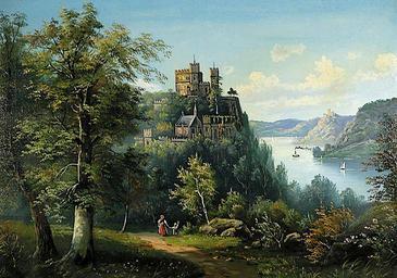 Keywords: Burg Rheinstein c 1900.jpg Artwork Creator Anonymous c 1900 Oil on canvas ca cm 50 70 object history exhibition history credit line accession number place of creation http //www henrys de/ Burg Rheinstein PD-art