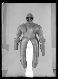 | Keywords: Burgonet, till halvrustning, 1600-tal - Livrustkammaren - 60520.tif Av driven stålplåt med rester av förgyllning <br/><br/>Rundad klocka med något flackare sidor sammansmidd av två halvor Upptill kam h 13 mm med omvikt och rundsmidd kant Baktill över kammens nedre del en plymhållare Rörformig upptill tresidig och nedåt avsmalnande och allt rundare Åt sidorna konturerade vingar fästade med en nit Upptill i var sida och nertill i mitten ett hål Nertill avslutad med utstående kant och i denna nitad välvd krage med rundad kant <br/>Pannklaff med övre kanten utdragen i två spetsar och i mitten driven ås för kammen att löpa genom Ristad kantlinje och nertill nitar i rad Skärm b 65 mm vinklad utåt och svagt uppåt med rundade kanter framtill i mitten hopgående i utdragen spets <br/>Visir av tre stänger b 9 mm med cirkulärt tvärsnitt fästade upptill i pannklaffen De yttre nertill böjda inåt och sammansmidda med den mittre vars nedre ände är lätt utdragen och konturerad <br/>Hakstycke med rundade sidor nertill hopgående i spets över hakan Driven svagt spetsig förhöjning över hakan Nertill utstående kant med nitad välvd krage Pannklaff och hakstycke ledade med i bakre kant genomgående bult <br/>Alla yttre kanter omvikta rundsmidda och med ristde kantlinjer och nitar i rad Insidan med kantband av svärtat läder b13 mm original caption century 17 steel plate - leather Färg svart material läder - steel g 2300 size mm 320 270 325 LRK Jöns Bengtsson Oxenstierna Ärkebiskop Axel Oxenstierna af Södermöre place of origin original filename LN_B03087_005967 59096 inventory number LRK 23081 60520 CC0 Burgonet till halvrustning 1600-tal - Livrustkammaren - 60520-negative tif Plate armour from Livrustkammaren Media contributed by LSH 2013-10 Burgonet |